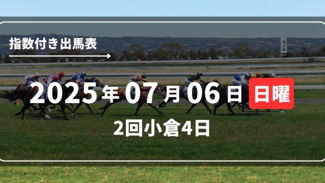 指数付き出馬表 2025年7月6日(日) 2回小倉4日 指数付き出馬表 2025年7月5日 yyyyhiro https://tkn-keiba.com/wp-content/uploads/2024/03/logo.png あなうま